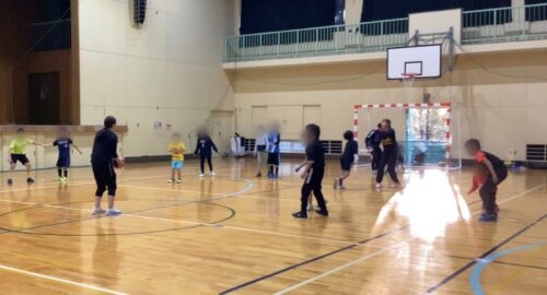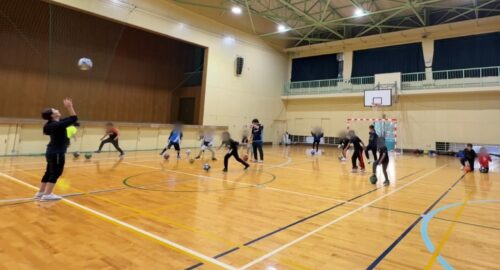 ひとりでチャレンジしたり、お友達と手を繋いでチーム戦にしたり、最後はドリブルで挑戦してみたりもしました。