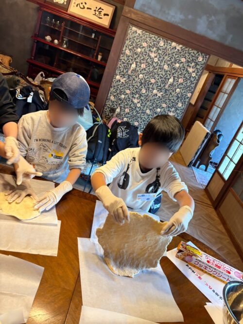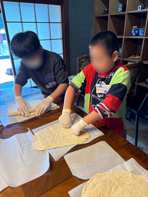手作りの生地を丸く伸ばす所から、食材を切って乗せる、ピザ窯で焼くところまで子ども達におまかせして作りました😊
