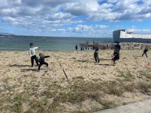 海では、ビーチフラッグや綱引き、ビーチサッカーやミニドッチボールを楽しみました🍀お友達やコーチと協力して勝負に勝ったり負けたり・・・色んな感情を見せながらも仲間と楽しむ素敵な経験をすることが出来ました😊また、自由時間では海を散策してたくさん貝殻を拾ったり漂流物に興味を持って観察したりとお友達やコーチと楽しい時間を過ごしました♡