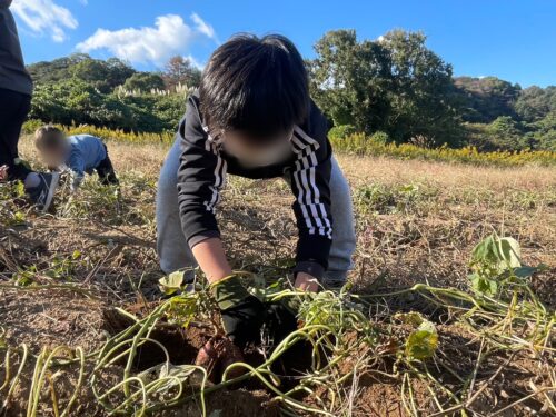 畑に着くなり「おっきい芋できてるかなあ?」「50個掘るねん!」と気合いが入っている子ども達でした✨