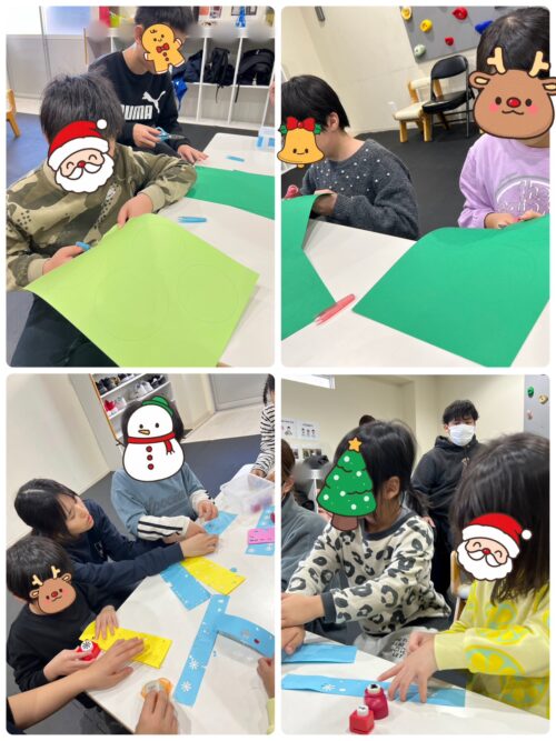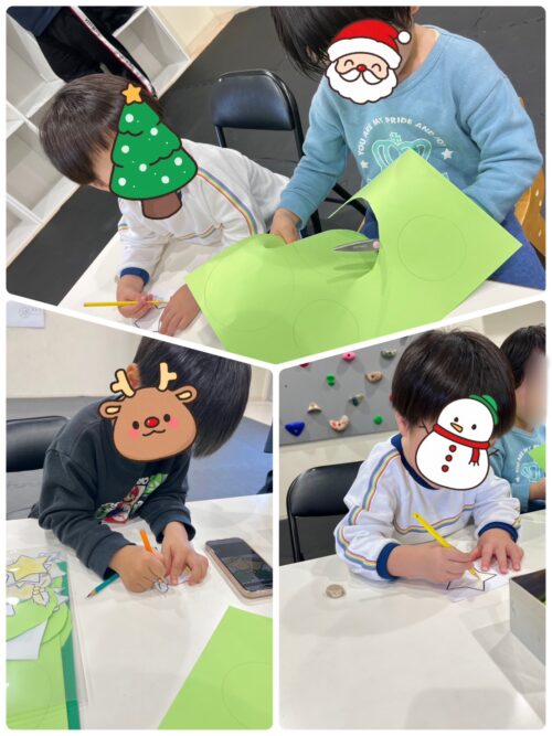 かがやきサンタさんやクリスマスツリーを思い浮かべながら、ハサミで切ったり、色を塗ったりして、楽しく取り組むことが出来ました✨