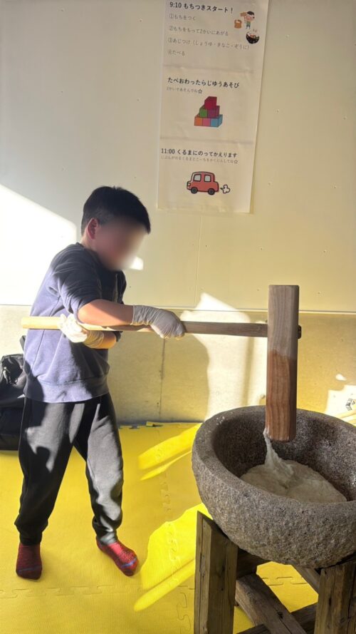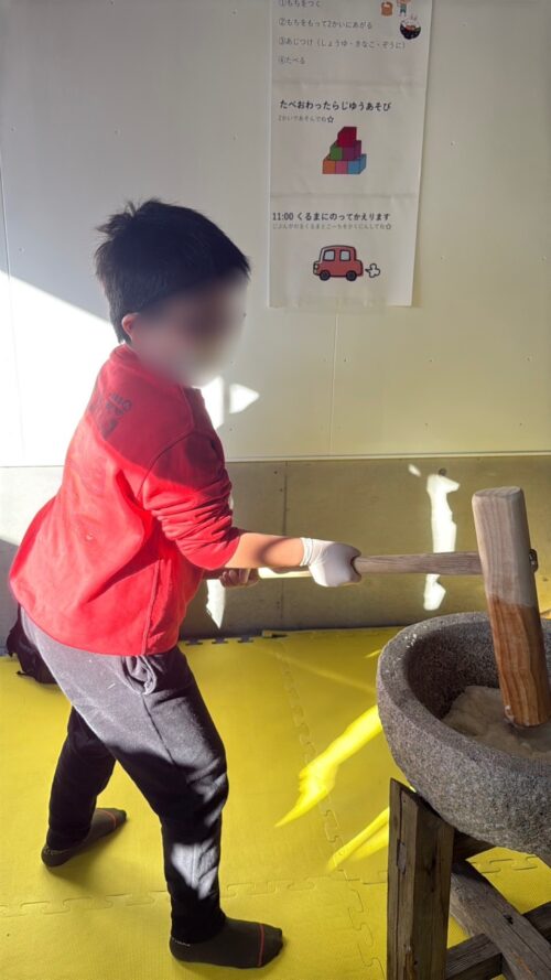 全身の力をたくさん使って強く強くお餅をつくことが出来た子ども達。自分でついたお餅、丸めたお餅は特別美味しくて「最高〜〜👍🏻」「おかわりある〜??」と笑顔いっぱいの時間となりました😊
